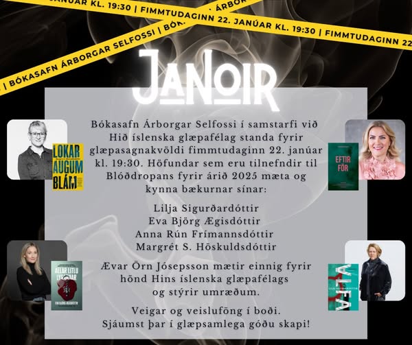 You are currently viewing Janoir – Glæpasagnakvöld 22. janúar kl. 19:30